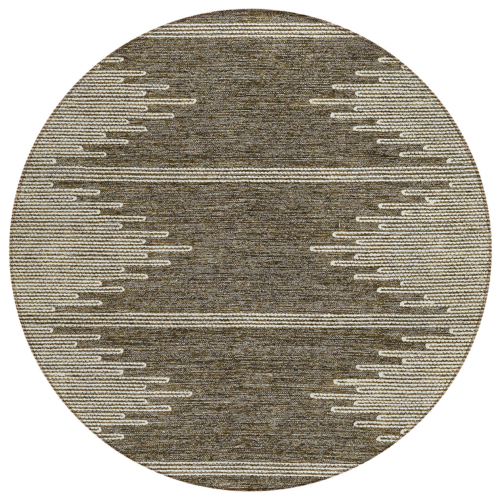 Add great coloration and comfortable texture to your space with this 8-foot coffee and ivory round abstract washable indoor outdoor area rug. This geometric round shaped rug features a abstract pattern in coffee and ivory that combines a good looking print with a unique and updated shape. The mix of shape, color, and design gives this rug refreshing visual interest. Ideal for outdoor spaces or high traffic areas with kids and pets, this rug is made from heavy duty polyester that is stain resistant to help repel water, dirt, and stains. Makes a great way to dress up your patio, porch, or poolside, but also works well as a durable and easy to maintain option in the kitchen, family room, or mudroom. 96-inch h x 96-inch w x 0.19-inch d.