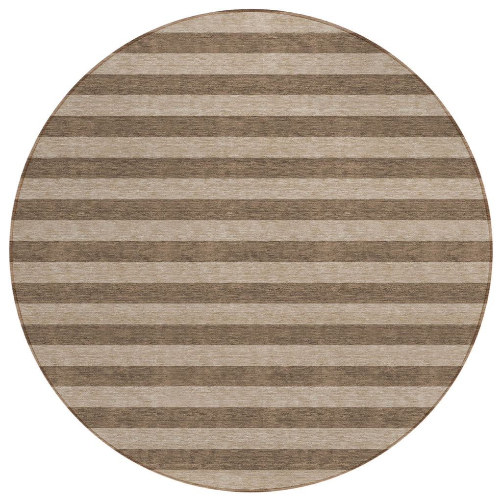 Add great coloration and comfortable texture to your space with this 8-foot round coffee round striped washable stain resistant non skid indoor outdoor area rug. This geometric round shaped rug features a striped pattern in coffee that combines a good looking print with a unique and updated shape. The mix of shape, color, and design gives this rug refreshing visual interest. Ideal for spaces with kids and pets, this rug is stain resistant to help repel stains and spilled liquids. Area rugs help to give warmth and sense of home to your space. 96-inch H x 96-inch W x 0.19-inch D
