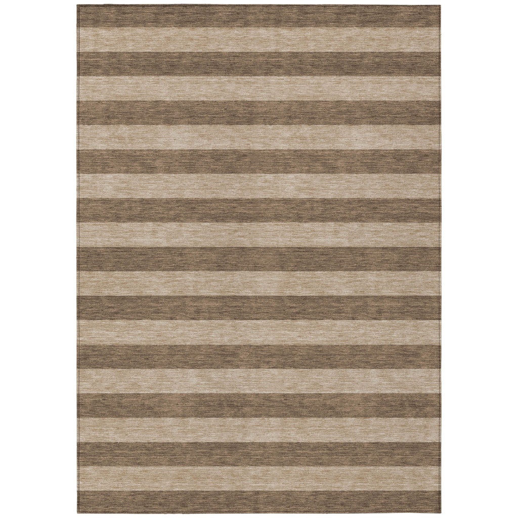 Add great coloration and comfortable texture to your space with this 8-foot x 10-foot coffee striped washable stain resistant non skid indoor outdoor area rug. This rectangle shaped rug features a striped design in coffee to give it visual interest. A classic shape marries with good looking design for your space ideal for spaces with kids and pets, this rug is stain resistant to help repel stains and spilled liquids. Area rugs help to give warmth and sense of home to your space. 96-inch H x 120-inch W x 0.19-inch D