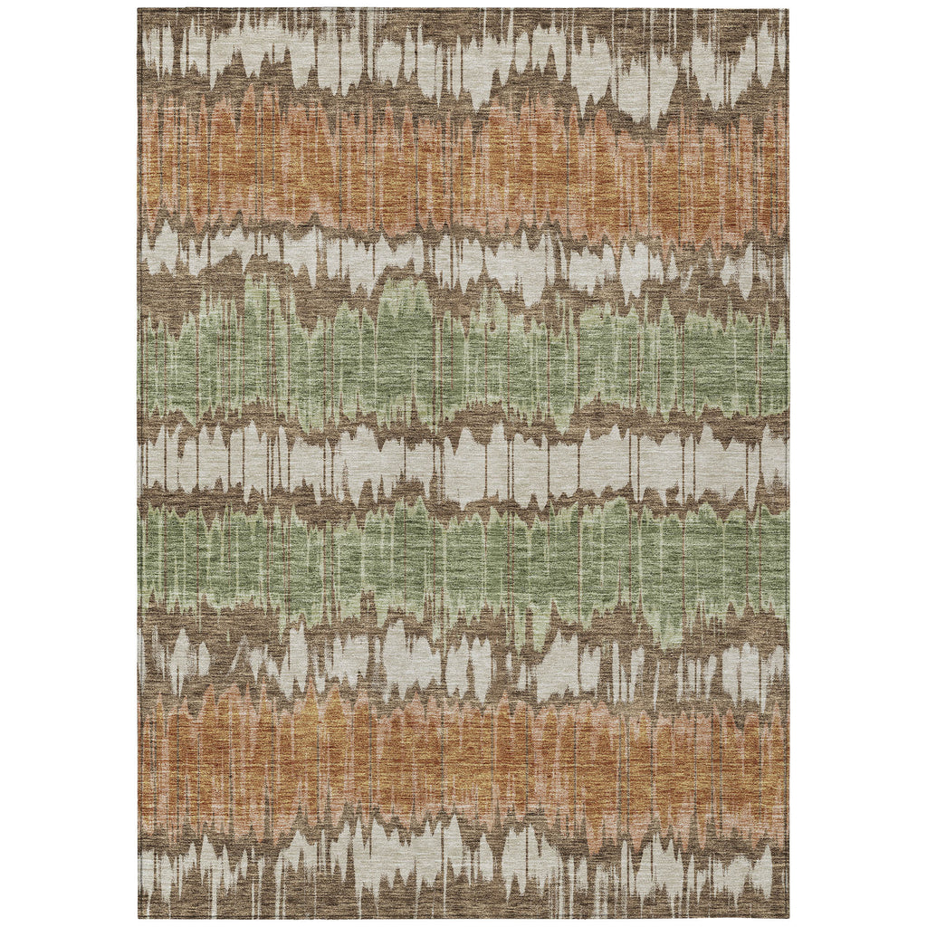 Set an inviting tone in your space with this 3-foot x 5-foot chocolate copper and green striped washable indoor outdoor area rug. This rectangle shaped rug features a striped design that will work well both indoors or out. A classic shape marries with good looking design for your living room, hall, bedroom, porch, patio, or poolside. Ideal for outdoor spaces or high traffic areas with kids and pets, this rug is made from heavy duty polyester that is stain resistant to help repel water, dirt, and stains. Versatile in use, durable, and easy to maintain, this rug is an ideal solution to add a decorative and inviting touch to your indoor or outdoor space. 36-inch h x 60-inch w x 0.19-inch d.