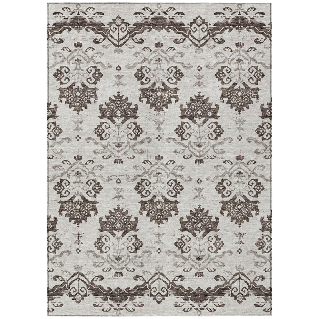 This 3-foot x 5-foot chocolate taupe and beige oriental washable indoor outdoor area rug, is a great way to add warmth to a room. This rectangle shaped rug features a oriental design that will work well both indoors or out. A classic shape marries with good looking design for your living room, hall, bedroom, porch, patio, or poolside. Ideal for outdoor spaces or high traffic areas with kids and pets, this rug is made from heavy duty polyester that is stain resistant to help repel water, dirt, and stains. Makes a great way to dress up your patio, porch, or poolside, but also works well as a durable and easy to maintain option in the kitchen, family room, or mudroom. 36-inch h x 60-inch w x 0.19-inch d.