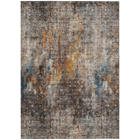 3' X 5' Taupe Chocolate And Copper Abstract Washable Indoor Outdoor Area Rug
