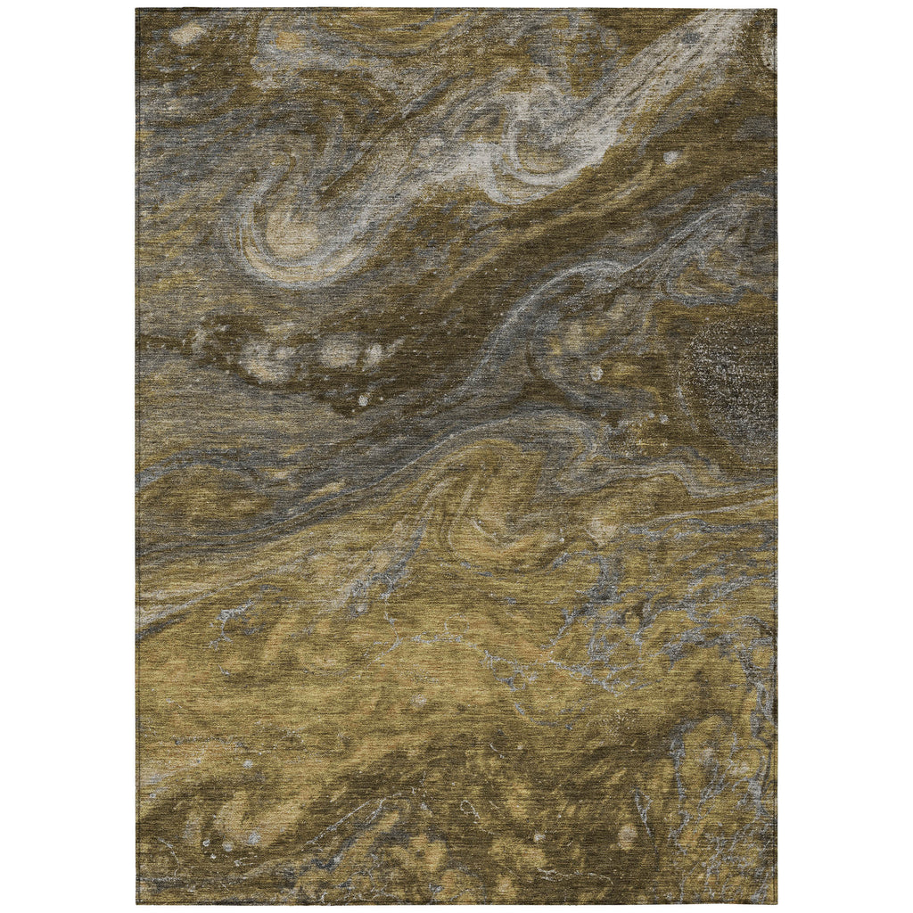 5' X 8' Brown Taupe And Chocolate Abstract Washable Indoor Outdoor Area Rug