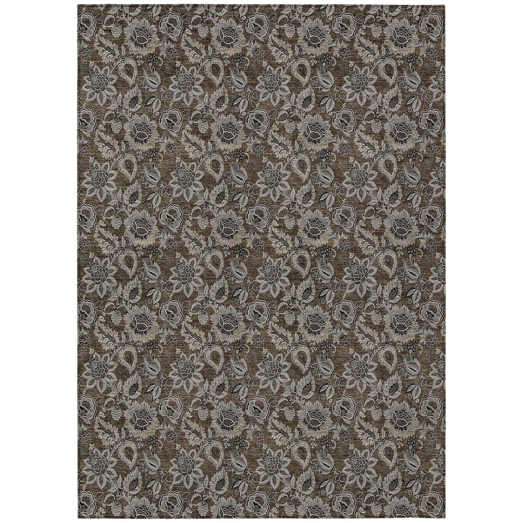 This 5-foot x 8-foot chocolate and charcoal floral washable indoor outdoor area rug, is a great way to add warmth to a room. This rectangle shaped rug features a floral design that will work well both indoors or out. A classic shape marries with good looking design for your living room, hall, bedroom, porch, patio, or poolside. Ideal for outdoor spaces or high traffic areas with kids and pets, this rug is made from heavy duty polyester that is stain resistant to help repel water, dirt, and stains. Versatile in use, durable, and easy to maintain, this rug is an ideal solution to add a decorative and inviting touch to your indoor or outdoor space. 60-inch h x 90-inch w x 0.19-inch d.