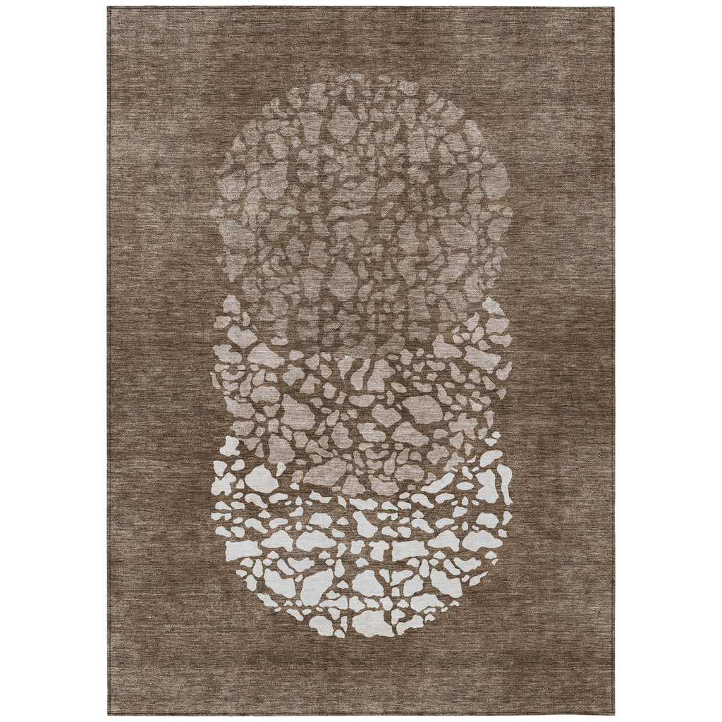 Add great coloration and comfortable texture to your space with this 5-foot x 8-foot chocolate and taupe abstract washable indoor outdoor area rug. This rectangle shaped rug features a abstract design that will work well both indoors or out. A classic shape marries with good looking design for your living room, hall, bedroom, porch, patio, or poolside. Ideal for outdoor spaces or high traffic areas with kids and pets, this rug is made from heavy duty polyester that is stain resistant to help repel water, dirt, and stains. Makes a great way to dress up your patio, porch, or poolside, but also works well as a durable and easy to maintain option in the kitchen, family room, or mudroom. 60-inch h x 90-inch w x 0.19-inch d.