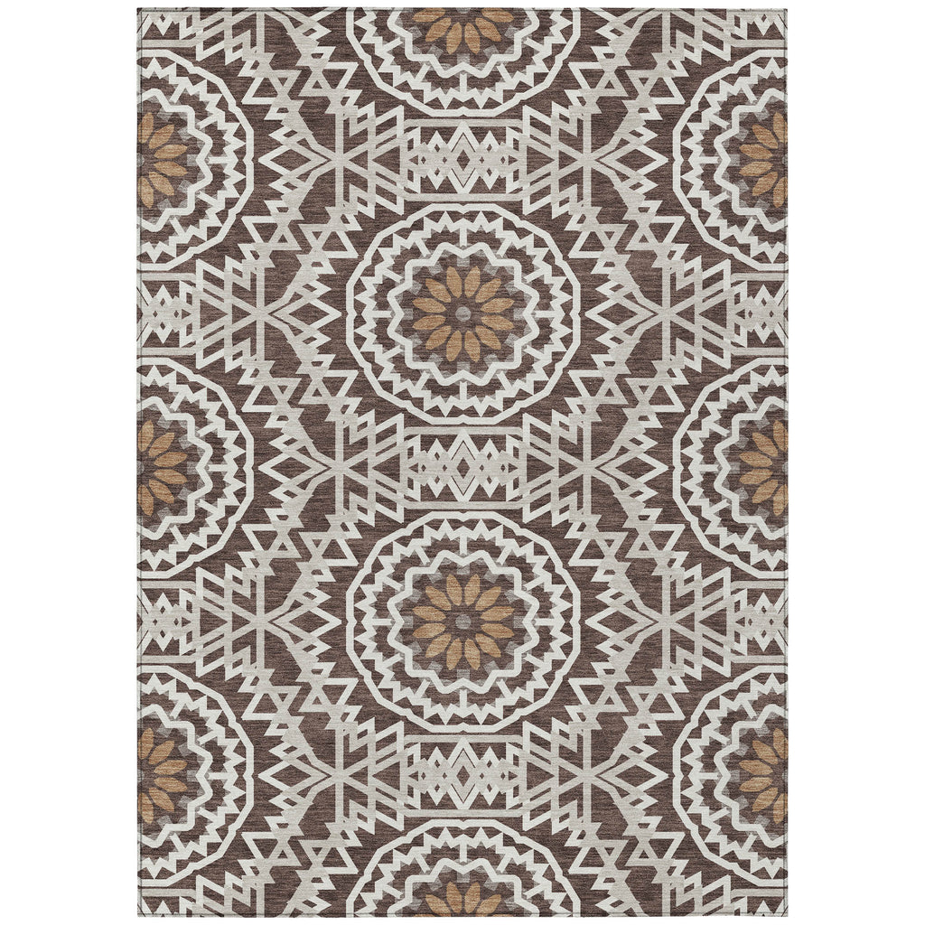 Set an inviting tone in your space with this 5-foot x 8-foot chocolate ivory and taupe floral medallion washable indoor outdoor area rug. This rectangle shaped rug features a floral medallion design that will work well both indoors or out. A classic shape marries with good looking design for your living room, hall, bedroom, porch, patio, or poolside. Ideal for outdoor spaces or high traffic areas with kids and pets, this rug is made from heavy duty polyester that is stain resistant to help repel water, dirt, and stains. Makes a great way to dress up your patio, porch, or poolside, but also works well as a durable and easy to maintain option in the kitchen, family room, or mudroom. 60-inch h x 90-inch w x 0.19-inch d.
