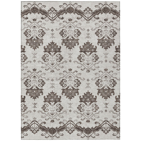 5' X 8' Chocolate Taupe And Beige Oriental Washable Indoor Outdoor Area Rug