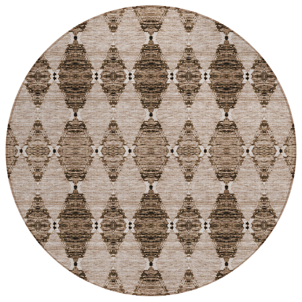 8' Brown And Chocolate Round Moroccan Washable Indoor Outdoor Area Rug