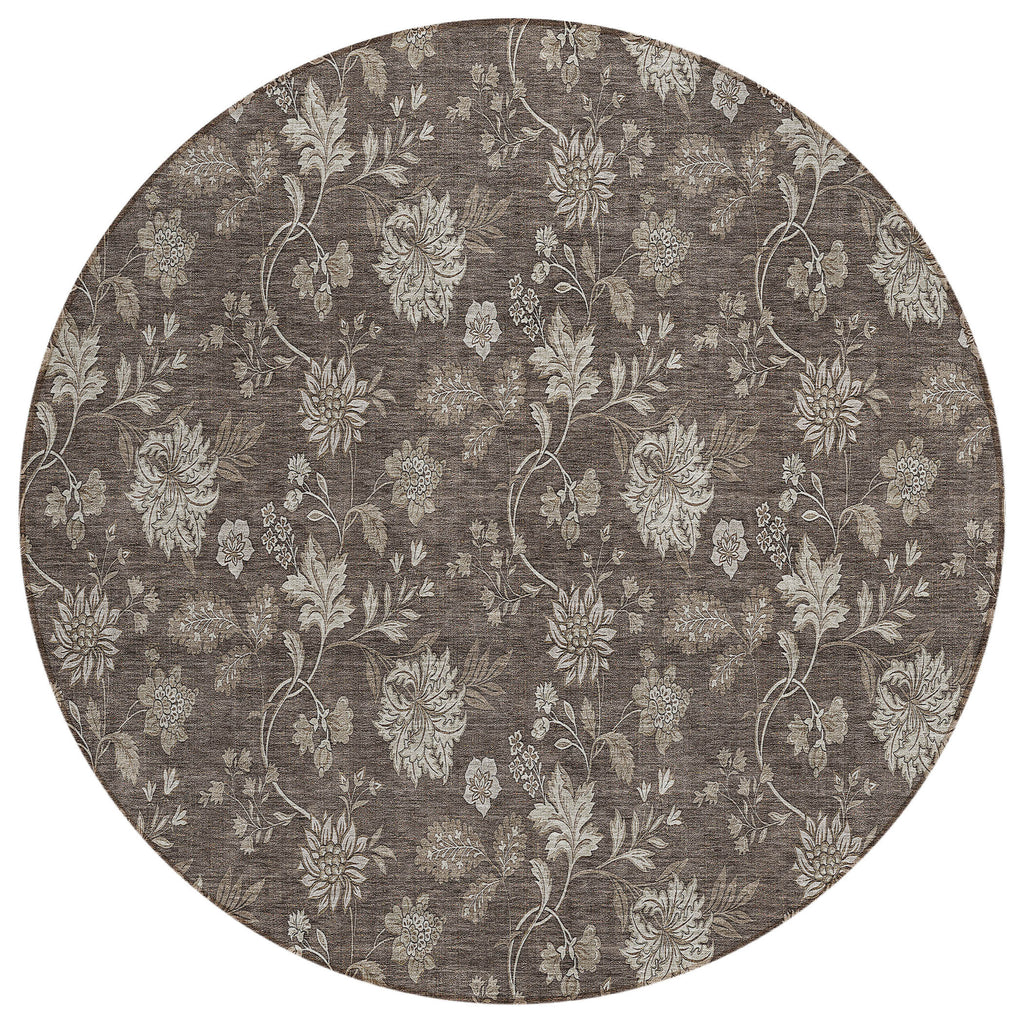 This 8-foot chocolate beige and taupe round floral washable indoor outdoor area rug, is a great way to add warmth to a room. This geometric round shaped rug features a floral pattern in chocolate, beige, and taupe that combines a good looking print with a unique and updated shape. The mix of shape, color, and design gives this rug refreshing visual interest. Ideal for outdoor spaces or high traffic areas with kids and pets, this rug is made from heavy duty polyester that is stain resistant to help repel water, dirt, and stains. Makes a great way to dress up your patio, porch, or poolside, but also works well as a durable and easy to maintain option in the kitchen, family room, or mudroom. 96-inch h x 96-inch w x 0.19-inch d.