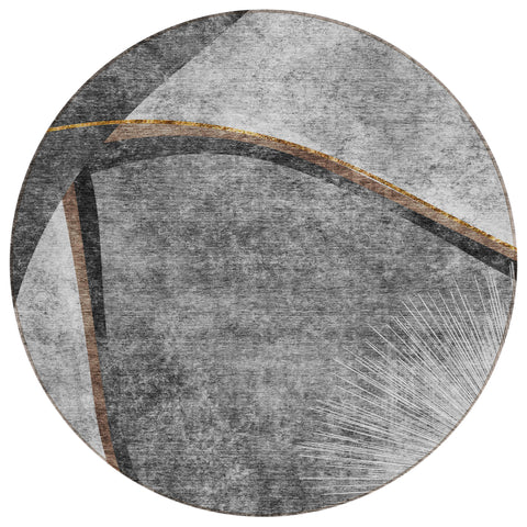 Add some artistry to your room with this 8-foot gray chocolate and silver round abstract washable indoor outdoor area rug. This geometric round shaped rug features a abstract pattern in gray, chocolate, and silver that combines a good looking print with a unique and updated shape. The mix of shape, color, and design gives this rug refreshing visual interest. Ideal for outdoor spaces or high traffic areas with kids and pets, this rug is made from heavy duty polyester that is stain resistant to help repel water, dirt, and stains. Versatile in use, durable, and easy to maintain, this rug is an ideal solution to add a decorative and inviting touch to your indoor or outdoor space. 96-inch h x 96-inch w x 0.19-inch d.