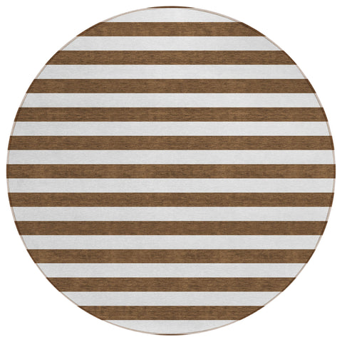 Add some artistry to your room with this 8-foot round chocolate round striped washable stain resistant non skid indoor outdoor area rug. This geometric round shaped rug features a striped pattern in chocolate that combines a good looking print with a unique and updated shape. The mix of shape, color, and design gives this rug refreshing visual interest. Ideal for spaces with kids and pets, this rug is stain resistant to help repel stains and spilled liquids. Place this area rug against a hardwood or tile floor and it will enliven your living space with style and sophistication. 96-inch H x 96-inch W x 0.19-inch D