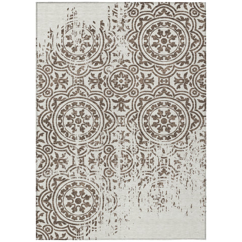 Add some artistry to your room with this 8-foot x 10-foot chocolate and ivory medallion washable indoor outdoor area rug. This rectangle shaped rug features a medallion design that will work well both indoors or out. A classic shape marries with good looking design for your living room, hall, bedroom, porch, patio, or poolside. Ideal for outdoor spaces or high traffic areas with kids and pets, this rug is made from heavy duty polyester that is stain resistant to help repel water, dirt, and stains. Versatile in use, durable, and easy to maintain, this rug is an ideal solution to add a decorative and inviting touch to your indoor or outdoor space. 96-inch h x 120-inch w x 0.19-inch d.