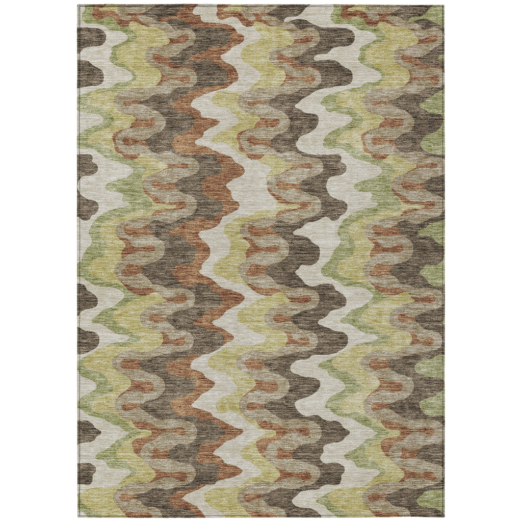 This 8-foot x 10-foot chocolate copper and artichoke green abstract washable indoor outdoor area rug, is a great way to add warmth to a room. This rectangle shaped rug features a abstract design that will work well both indoors or out. A classic shape marries with good looking design for your living room, hall, bedroom, porch, patio, or poolside. Ideal for outdoor spaces or high traffic areas with kids and pets, this rug is made from heavy duty polyester that is stain resistant to help repel water, dirt, and stains. Versatile in use, durable, and easy to maintain, this rug is an ideal solution to add a decorative and inviting touch to your indoor or outdoor space. 96-inch h x 120-inch w x 0.19-inch d.