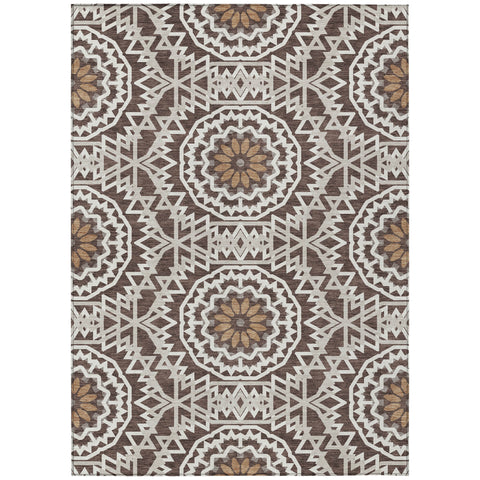 This 8-foot x 10-foot chocolate ivory and taupe floral medallion washable indoor outdoor area rug, is a great way to add warmth to a room. This rectangle shaped rug features a floral medallion design that will work well both indoors or out. A classic shape marries with good looking design for your living room, hall, bedroom, porch, patio, or poolside. Ideal for outdoor spaces or high traffic areas with kids and pets, this rug is made from heavy duty polyester that is stain resistant to help repel water, dirt, and stains. Versatile in use, durable, and easy to maintain, this rug is an ideal solution to add a decorative and inviting touch to your indoor or outdoor space. 96-inch h x 120-inch w x 0.19-inch d.