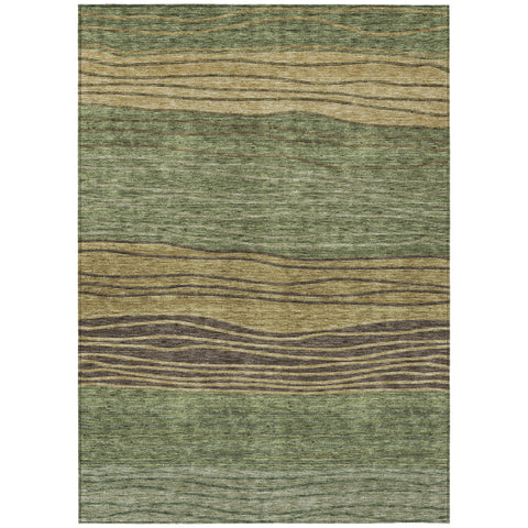 8' X 10' Olive Green And Chocolate Striped Washable Indoor Outdoor Area Rug
