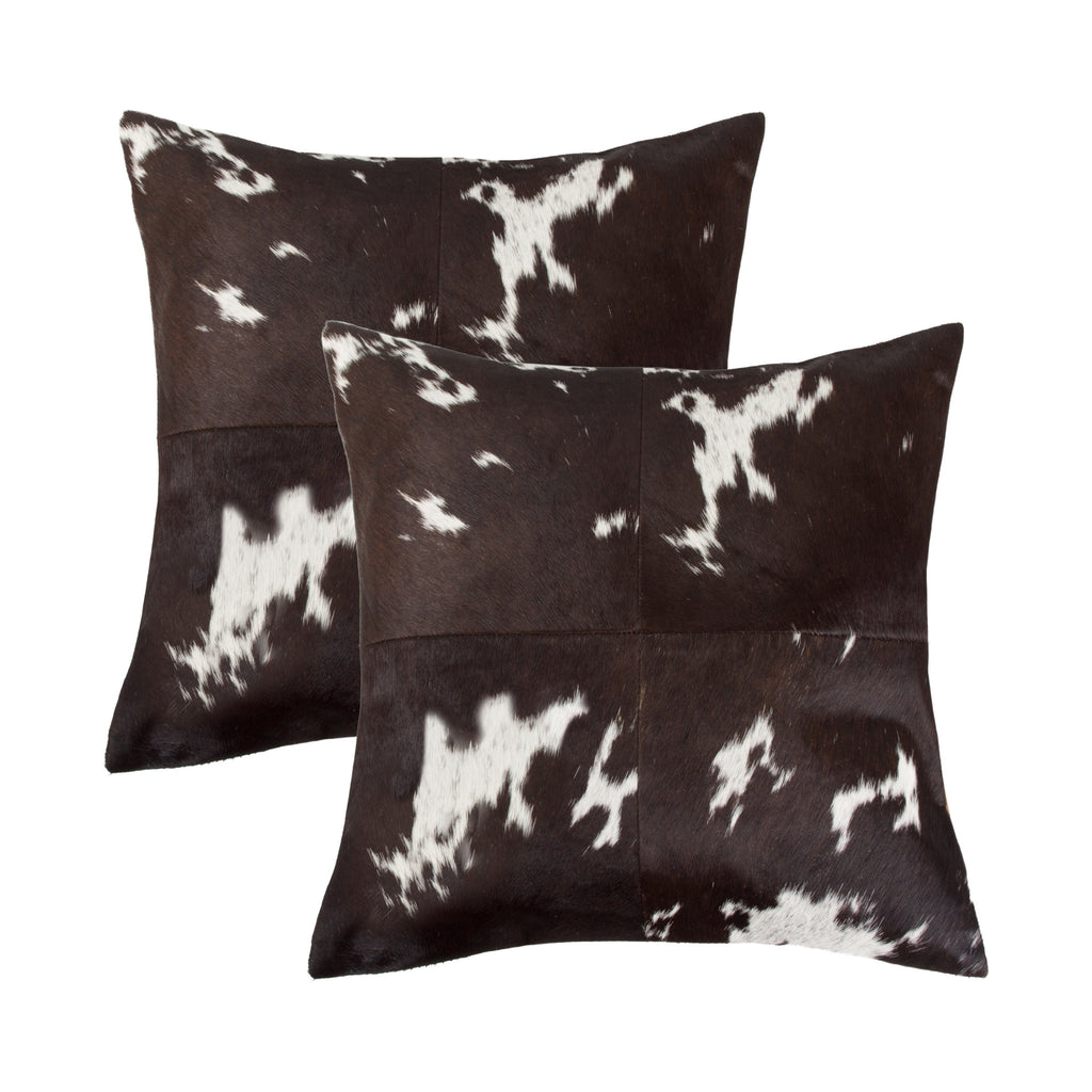 Set of Two 18" Chocolate and White Cowhide Cowhide Throw Pillows