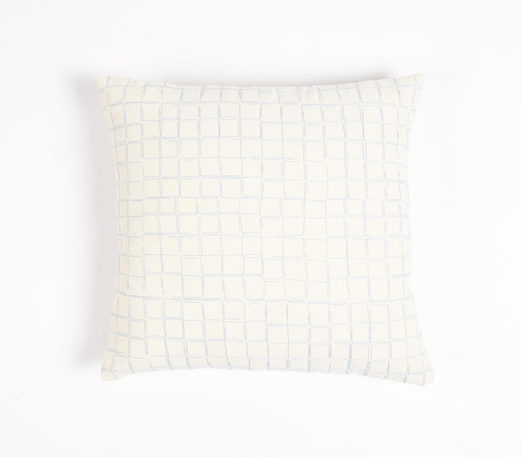 This 16-inch beige and gray geometric cotton throw pillow cover with embroidery will add a beautiful decorative accent to your decor. The beige and gray coloring of the extremely durable and long lasting cotton pillow cover will add dimension and texture to your space. For anyone that loves to decorate or accent their space with color and texture. A great decorative accessory for your favorite chair, to accent your sofa, or to use as part of your bed ensemble. 16-inch H x 16-inch W x 0.1-inch D