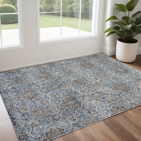 Set an inviting tone in your space with this 2-foot x 4-foot slate blue area rug. Area rugs help to give warmth and sense of home to your space. Crafted using a machine-woven technique, this rectangle rug is expertly constructed with viscose material, offering a contemporary style that effortlessly complements your decor with its sleek design and soothing color palette. Perfect for adding a touch of elegance and comfort to any room, this area rug is a versatile piece that enhances the ambiance of your living space. 26-inch H x 43-inch W x 0.13-inch D