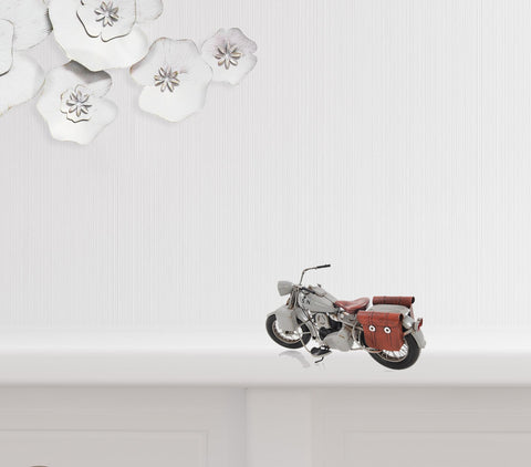 Authentic and realistic, the c1942 Indian Model 741 Sculpture is a replica of the iconic bike built for military use in WWII. It features Indian's original V-twin engine design with a hand-shifted transmission. Handcrafted out of metal, it features all the original details of the bike. The spoke rolling wheels, pedals, and exterior details such as ammo and gun pouches only emphasize the bike's character. A great gift for bike lovers and enthusiasts. 5.75" x 12" x 4.75"