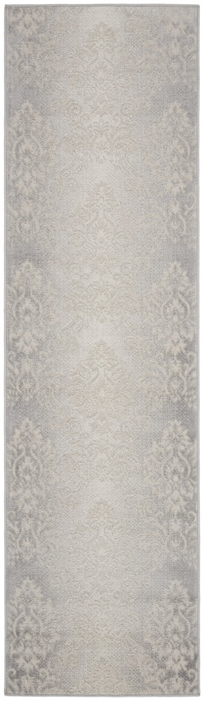 Add great coloration and comfortable texture to your space with this 8-foot gray and ivory damask distressed non skid runner rug. Ideal for spaces with kids and pets, this rug is stain resistant to help repel dirt and spilled liquids. Built to last, this rug crafted from polypropylene fibers is known for its durability and long lasting appeal. Rugs are a great way to showcase your style, hide imperfections, warm your home and reduce noise. This rectangular shaped rug features a abstract design that will add a functional and decorative accent to your space. This transitional styled runners makes a great accent for the hallway, in front of cabinets, in the laundry room, or any other space you need a narrow and long rug. 27-inch h x 90-inch w x 0.25-inch d