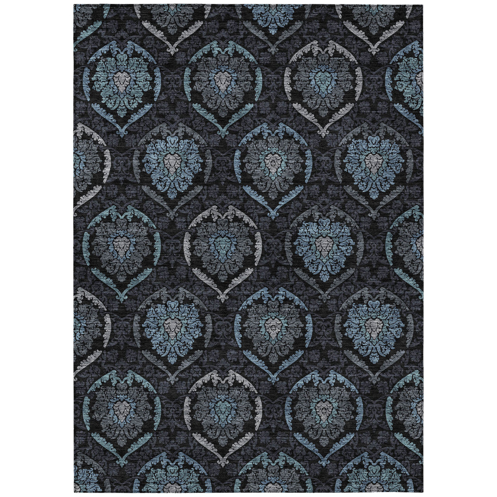 Add some artistry to your room with this 8-foot x 10-foot blue charcoal and gray medallion washable indoor outdoor area rug. This rectangle shaped rug features a medallion design that will work well both indoors or out. A classic shape marries with good looking design for your living room, hall, bedroom, porch, patio, or poolside. Ideal for outdoor spaces or high traffic areas with kids and pets, this rug is made from heavy duty polyester that is stain resistant to help repel water, dirt, and stains. Versatile in use, durable, and easy to maintain, this rug is an ideal solution to add a decorative and inviting touch to your indoor or outdoor space. 96-inch h x 120-inch w x 0.19-inch d.
