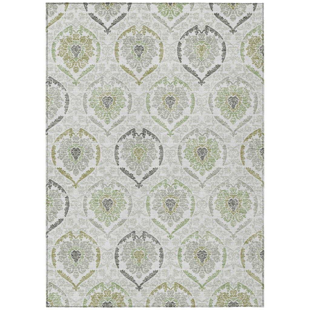 Add some artistry to your room with this 8-foot x 10-foot gray and olive green medallion washable indoor outdoor area rug. This rectangle shaped rug features a medallion design that will work well both indoors or out. A classic shape marries with good looking design for your living room, hall, bedroom, porch, patio, or poolside. Ideal for outdoor spaces or high traffic areas with kids and pets, this rug is made from heavy duty polyester that is stain resistant to help repel water, dirt, and stains. Versatile in use, durable, and easy to maintain, this rug is an ideal solution to add a decorative and inviting touch to your indoor or outdoor space. 96-inch h x 120-inch w x 0.19-inch d.