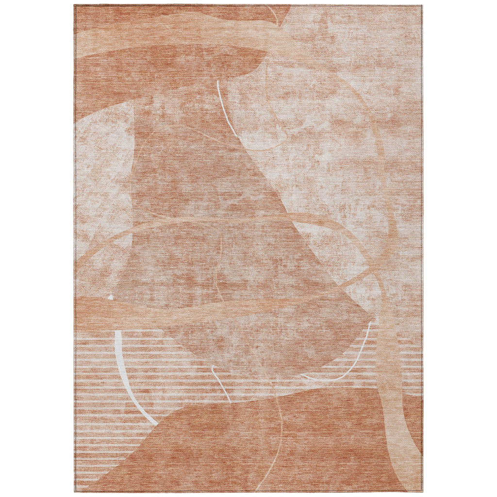 Add great coloration and comfortable texture to your space with this 8-foot x 10-foot salmon copper and ivory abstract washable indoor outdoor area rug. This rectangle shaped rug features a abstract design that will work well both indoors or out. A classic shape marries with good looking design for your living room, hall, bedroom, porch, patio, or poolside. Ideal for outdoor spaces or high traffic areas with kids and pets, this rug is made from heavy duty polyester that is stain resistant to help repel water, dirt, and stains. Versatile in use, durable, and easy to maintain, this rug is an ideal solution to add a decorative and inviting touch to your indoor or outdoor space. 96-inch h x 120-inch w x 0.19-inch d.