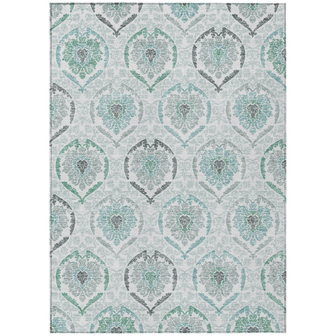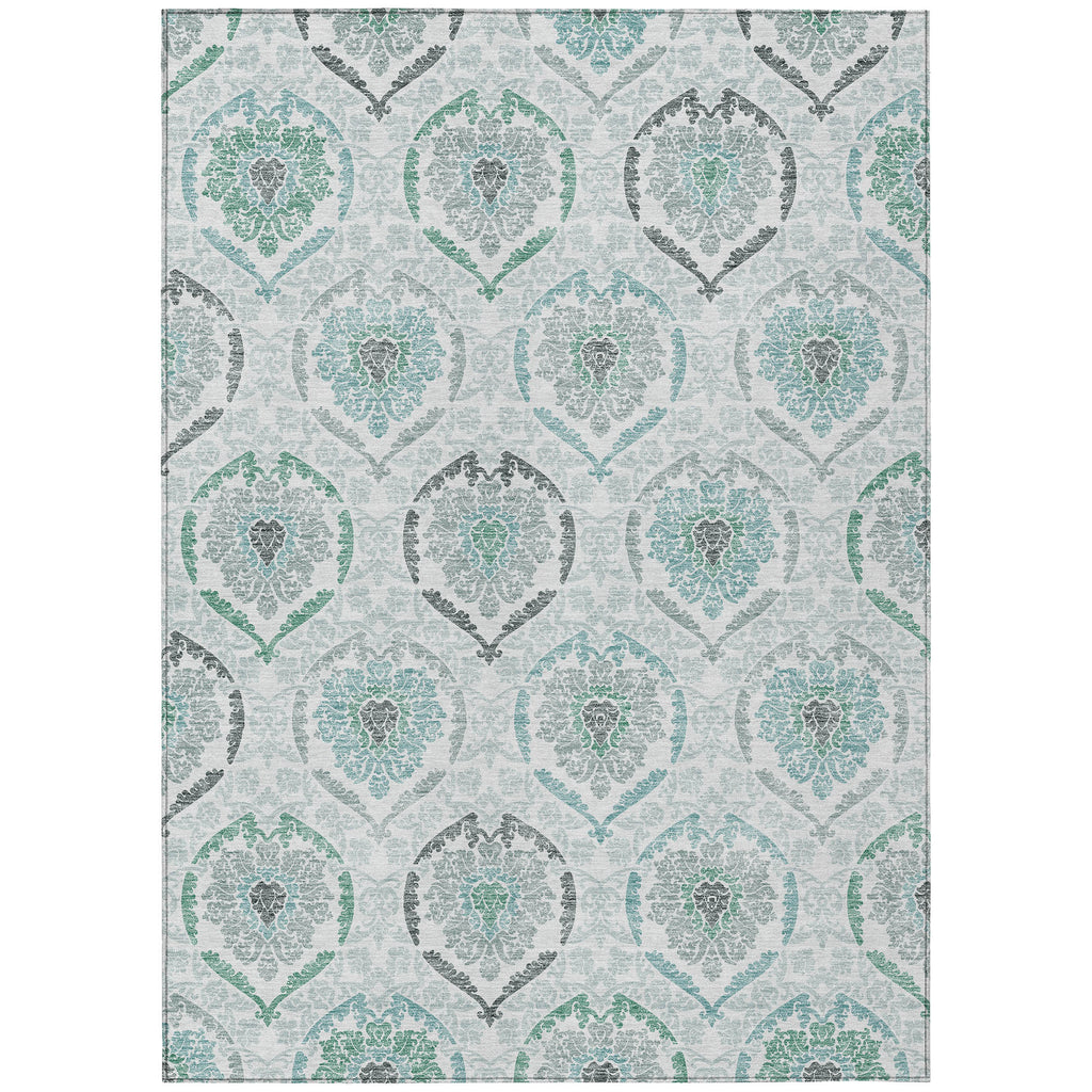 Set an inviting tone in your space with this 8-foot x 10-foot teal blue silver and gray medallion washable indoor outdoor area rug. This rectangle shaped rug features a medallion design that will work well both indoors or out. A classic shape marries with good looking design for your living room, hall, bedroom, porch, patio, or poolside. Ideal for outdoor spaces or high traffic areas with kids and pets, this rug is made from heavy duty polyester that is stain resistant to help repel water, dirt, and stains. Makes a great way to dress up your patio, porch, or poolside, but also works well as a durable and easy to maintain option in the kitchen, family room, or mudroom. 96-inch h x 120-inch w x 0.19-inch d.