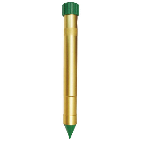 • Provides up to 13,500sq ft of coverage;• Gets rid of moles, voles, gophers, shrews & other burrowing rodents;• Patented motor drive generates powerful vibrations ;• Anodized with rich, gold tone & crafted from aluminum to ensure lifetime performance;• Watertight cap allows easy insertion at ground level, protecting lawnmower & making it virtually invisible;• Patented battery cylinder allows user to change batteries without removing unit from ground;