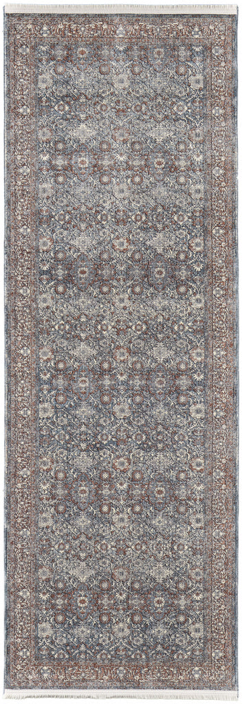 10' Blue and Beige Floral Power Loom Runner Rug With Fringe