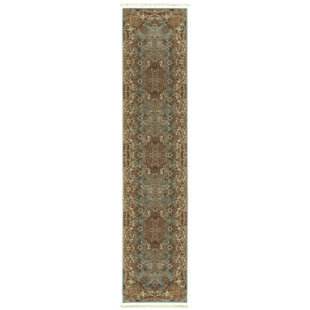 Add great coloration and comfortable texture to your space with this 10-foot blue medallion power loom runner rug with fringe. This runner shaped rug features a medallion design in blue to give it visual interest. A classic shape marries with good looking design for your space ideal for spaces with kids and pets, this rug is stain resistant to help repel stains and spilled liquids. Tassel ends bring a timeless and fashionable look to your interior. Area rugs help to give warmth and sense of home to your space. 26.77-inch H x 120.08-inch W x 0.16-inch D