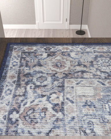 Set an inviting tone in your space with this 10-foot blue and ivory floral power loom distressed washable runner rug. This runner shaped rug features a floral design in blue and ivory to give it visual interest. A classic shape marries with good looking design for your space Area Rugs help to give warmth and sense of home to your space. 0.28-inch H x 26.00-inch W x 120.00-inch D