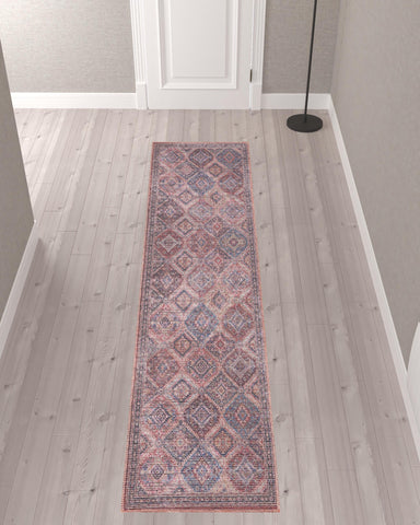 Add great coloration and comfortable texture to your space with this 10-foot blue and red floral power loom distressed washable runner rug. This runner shaped rug features a floral design in blue and red to give it visual interest. A classic shape marries with good looking design for your space Area Rugs help to give warmth and sense of home to your space. 0.28-inch H x 26.00-inch W x 120.00-inch D