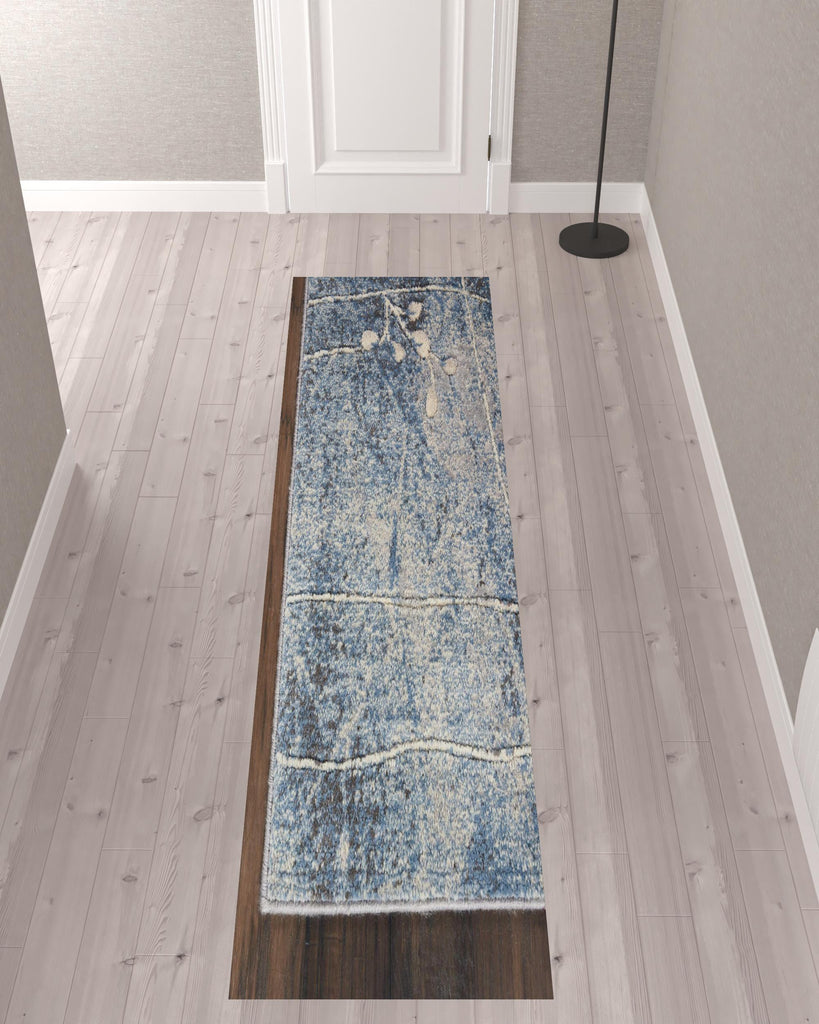 Add great coloration and comfortable texture to your space with this 10' blue floral power loom runner rug. This runner shaped rug features a floral design in blue to give it visual interest. A classic shape marries with good looking design for your space Place this area rug against a hardwood or tile floor and it will enliven your living space with style and sophistication. .50" H x 27" W x 120" D