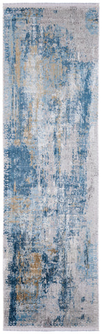 Add great coloration and comfortable texture to your space with this 10-foot blue gold and gray abstract power loom runner rug with fringe. This runner shaped rug features a abstract design in blue gold and gray to give it visual interest. A classic shape marries with good looking design for your space tassel ends bring a timeless and fashionable look to your interior. 37-inch H x 120-inch W x 0.32-inch D