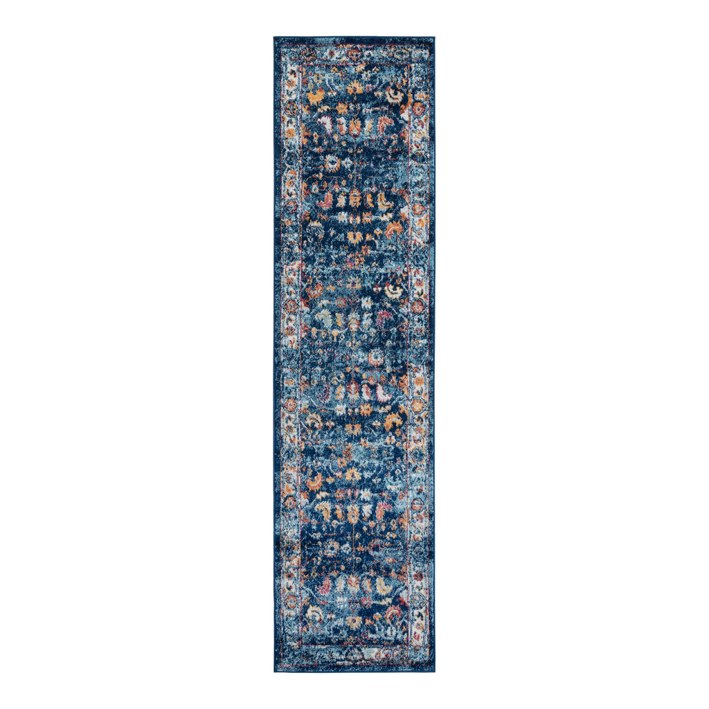 This 10-foot blue rust and orange oriental power loom runner rug, is a great way to add warmth to a room. This runner shaped rug features a oriental design that will add a functional and decorative accent to your space. Ideal for spaces with kids and pets, this rug is stain resistant to help repel dirt and spilled liquids. This smaller sized rug is just what you need for your walkway, or in front of door, cabinet, refrigerator, or chair. 30-inch h x 123-inch w x 0.38-inch d