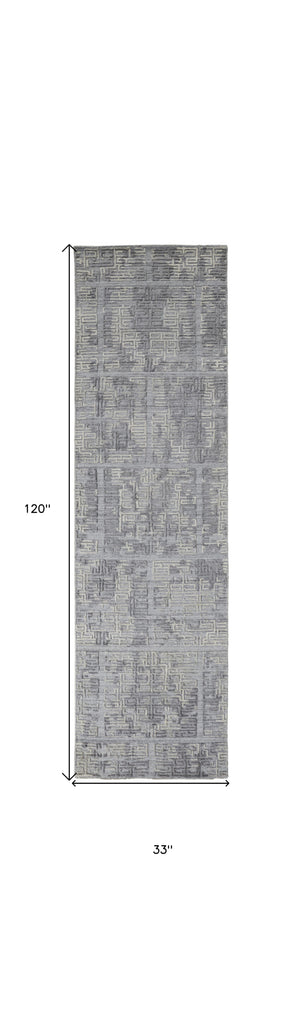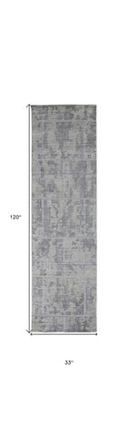 Add great coloration and comfortable texture to your space with this 10-foot gray and ivory abstract hand woven runner rug. This runner shaped rug features a abstract design in gray and ivory to give it visual interest. A classic shape marries with good looking design for your space crafted by skilled artisans, this hand woven rug is genuine and unique. No two will be exactly alike. 33-inch H x 120-inch W x 0.4-inch D