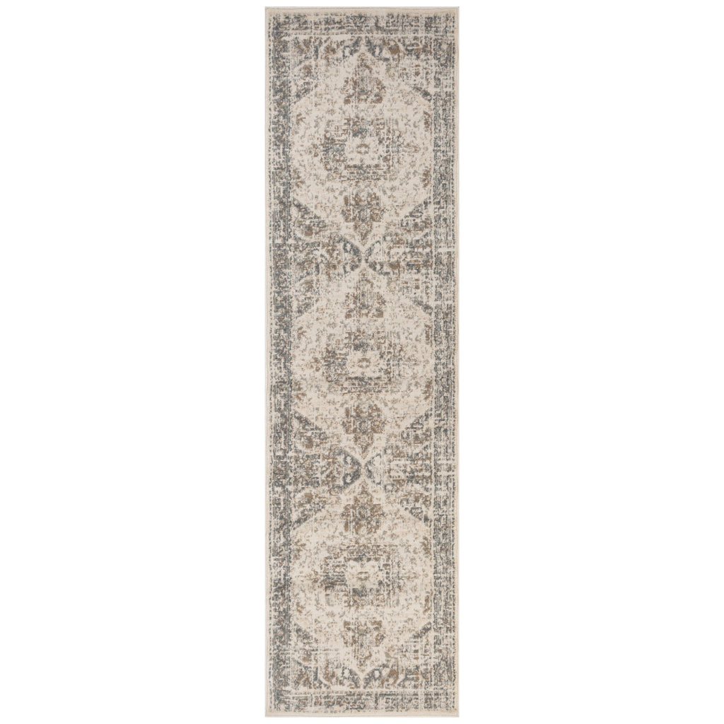 Add some artistry to your room with this 10-foot gray and light beige medallion power loom runner rug. This runner shaped rug features a medallion design that will add a functional and decorative accent to your space. Ideal for spaces with kids and pets, this rug is stain resistant to help repel dirt and spilled liquids. This smaller sized rug is just what you need for your walkway, or in front of door, cabinet, refrigerator, or chair. 31-inch h x 120-inch w x 0.32-inch d