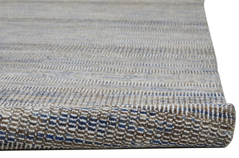 10' Gray Wool Striped Hand Knotted Runner Rug