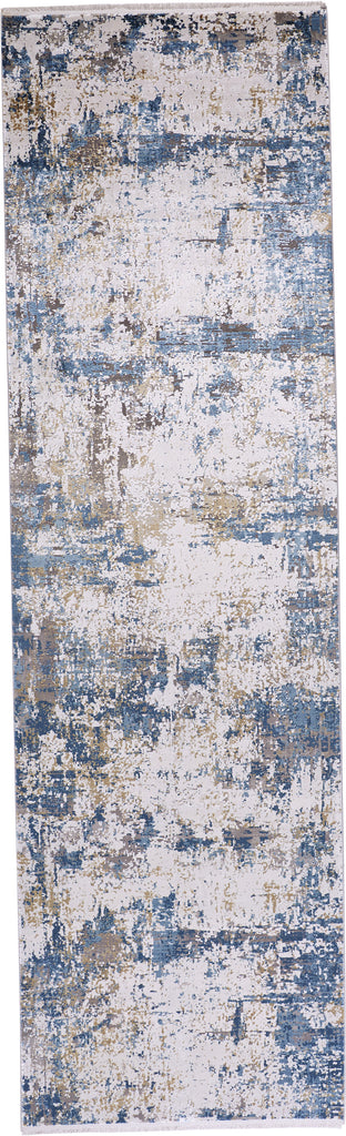 This 10-foot ivory tan and blue abstract power loom runner rug with fringe, is a great way to add warmth to a room. This runner shaped rug features a abstract design in ivory tan and blue to give it visual interest. A classic shape marries with good looking design for your space tassel ends bring a timeless and fashionable look to your interior. 37-inch H x 120-inch W x 0.32-inch D
