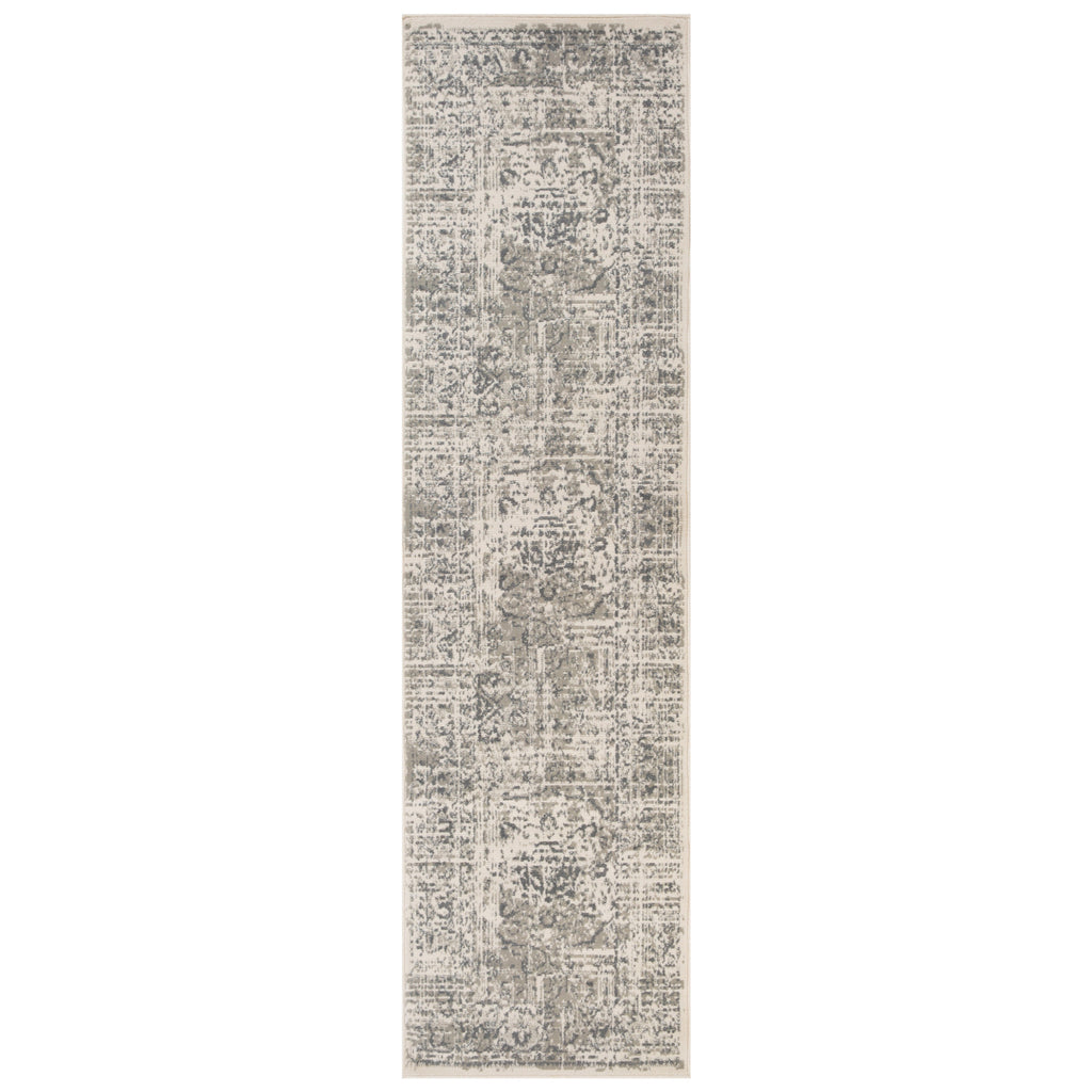 10' Medium Gray and Ivory Medallion Power Loom Runner Rug