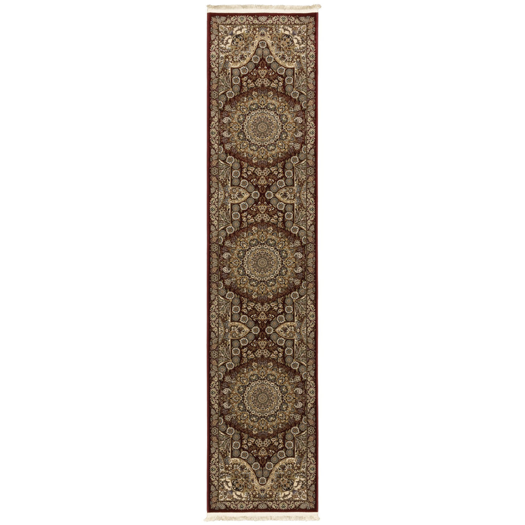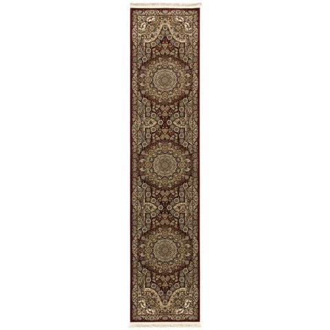 This 10-foot red medallion power loom runner rug with fringe, is a great way to add warmth to a room. This runner shaped rug features a medallion design in red to give it visual interest. A classic shape marries with good looking design for your space ideal for spaces with kids and pets, this rug is stain resistant to help repel stains and spilled liquids. Tassel ends bring a timeless and fashionable look to your interior. Area rugs help to give warmth and sense of home to your space. 26.77-inch H x 120.08-inch W x 0.16-inch D