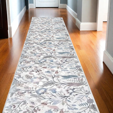 10' Ivory Floral Washable Runner Rug