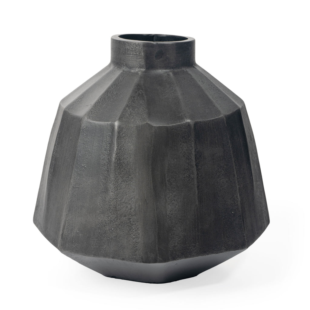 Add a touch of modern elegance to your space with this 11-inch gray geometric round aluminum table vase. The sleek round shape and geometric design make it a stylish addition to any room. Crafted from durable aluminum in a chic gray hue, this vase is both functional and decorative. Its modern style effortlessly complements contemporary home decor. Perfect for displaying your favorite flowers or simply as a standalone decorative piece, this table vase is a versatile accent for any tabletop. The neutral gray color adds a sophisticated touch to your interior design scheme, enhancing the overall aesthetic of your home. 11-inch H x 11-inch W x 11-inch D