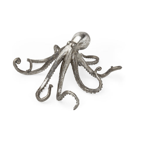 The 12-inch antiqued silver resin octopus tabletop sculpture is the perfect decorative accessory for your home. The rustic and antiqued silver coloring of this high quality resin figural accent will look great in most any space. Bring a little bit of tropical sea life indoors with this good looking octopus accent. 12.2-inch H x 13-inch W x 7-inch D