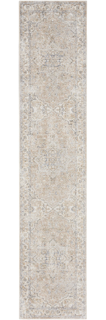 Add some artistry to your room with this 12' beige oriental power loom washable runner rug. This runner shaped rug features a oriental design in beige to give it visual interest. A classic shape marries with good looking design for your space This superior Turkish rug represents the highest quality and is built to last. Place this area rug against a hardwood or tile floor and it will enliven your living space with style and sophistication. .25" H x 26.00" W x 144.00" D