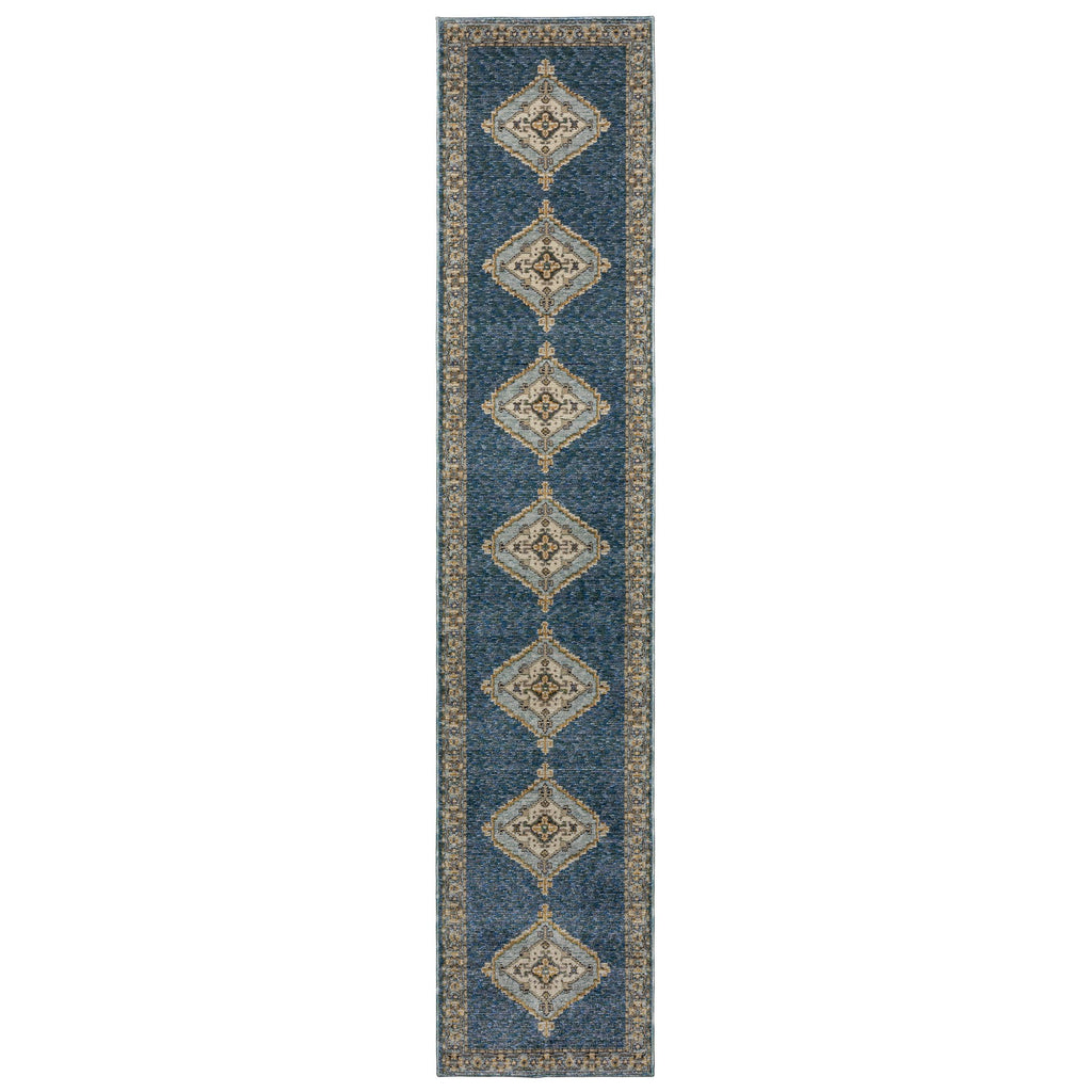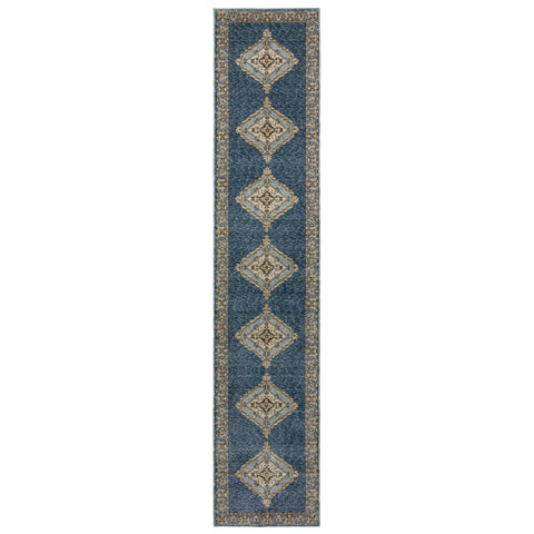 Add some artistry to your room with this 12-foot blue medallion power loom runner rug. This runner shaped rug features a medallion design in blue to give it visual interest. A classic shape marries with good looking design for your space ideal for spaces with kids and pets, this rug is stain resistant to help repel stains and spilled liquids. Area rugs help to give warmth and sense of home to your space. 29.92-inch H x 143.7-inch W x 0.55-inch D