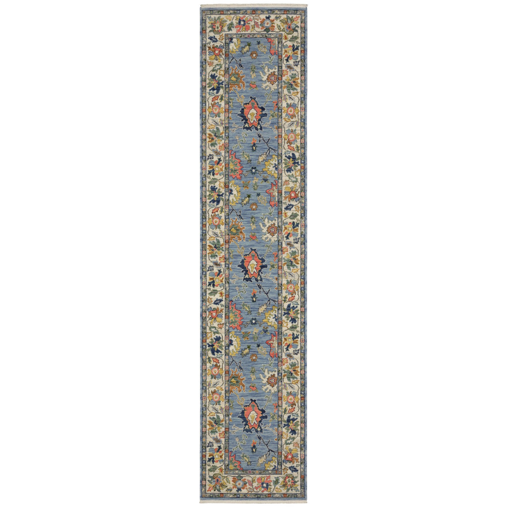 Set an inviting tone in your space with this 12-foot blue oriental runner rug with fringe. This runner shaped rug features a oriental design in blue to give it visual interest. A classic shape marries with good looking design for your space tassel ends bring a timeless and fashionable look to your interior. Area rugs help to give warmth and sense of home to your space. 30.71-inch H x 145.67-inch W x 0.32-inch D