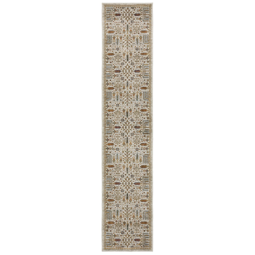 Set an inviting tone in your space with this 12-foot ivory oriental power loom runner rug. This runner shaped rug features a oriental design in ivory to give it visual interest. A classic shape marries with good looking design for your space the coloring of this rug adds a delightfully neutral tone to your home and will easily match with most any decor. Ideal for spaces with kids and pets, this rug is stain resistant to help repel stains and spilled liquids. Place this area rug against a hardwood or tile floor and it will enliven your living space with style and sophistication. 29.92-inch H x 143.7-inch W x 0.55-inch D