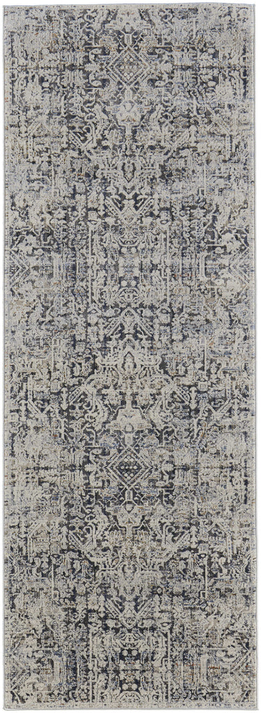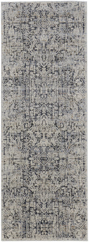 Set an inviting tone in your space with this 12-foot ivory and gray abstract power loom worn faded runner rug with fringe. This runner shaped rug features a abstract design that will add a functional and decorative accent to your space. Tassel ends bring a timeless and fashionable look to your interior. This smaller sized rug is just what you need for your walkway, or in front of door, cabinet, refrigerator, or chair. 30-inch h x 144-inch w x 0.39-inch d